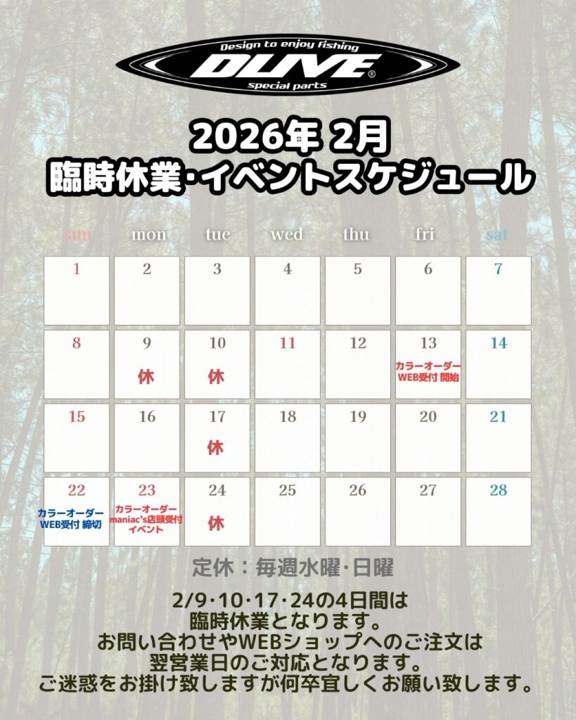 2026年2月9日(月)~11日(水) ,17日(火),24日(火) 臨時休業