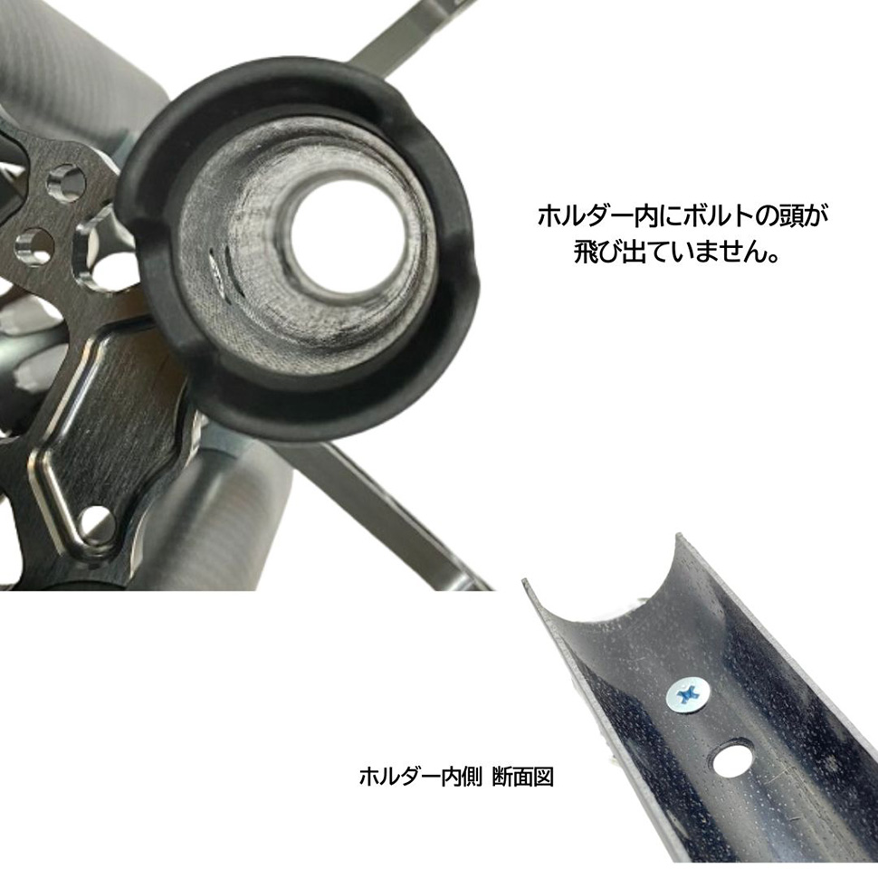 ホルダー内にボルトの頭が飛び出ない仕様に。ロッドを挿したときにロッドエンドへのダメージが無く、引っ掛かりがないスムーズな収納が可能になっています。